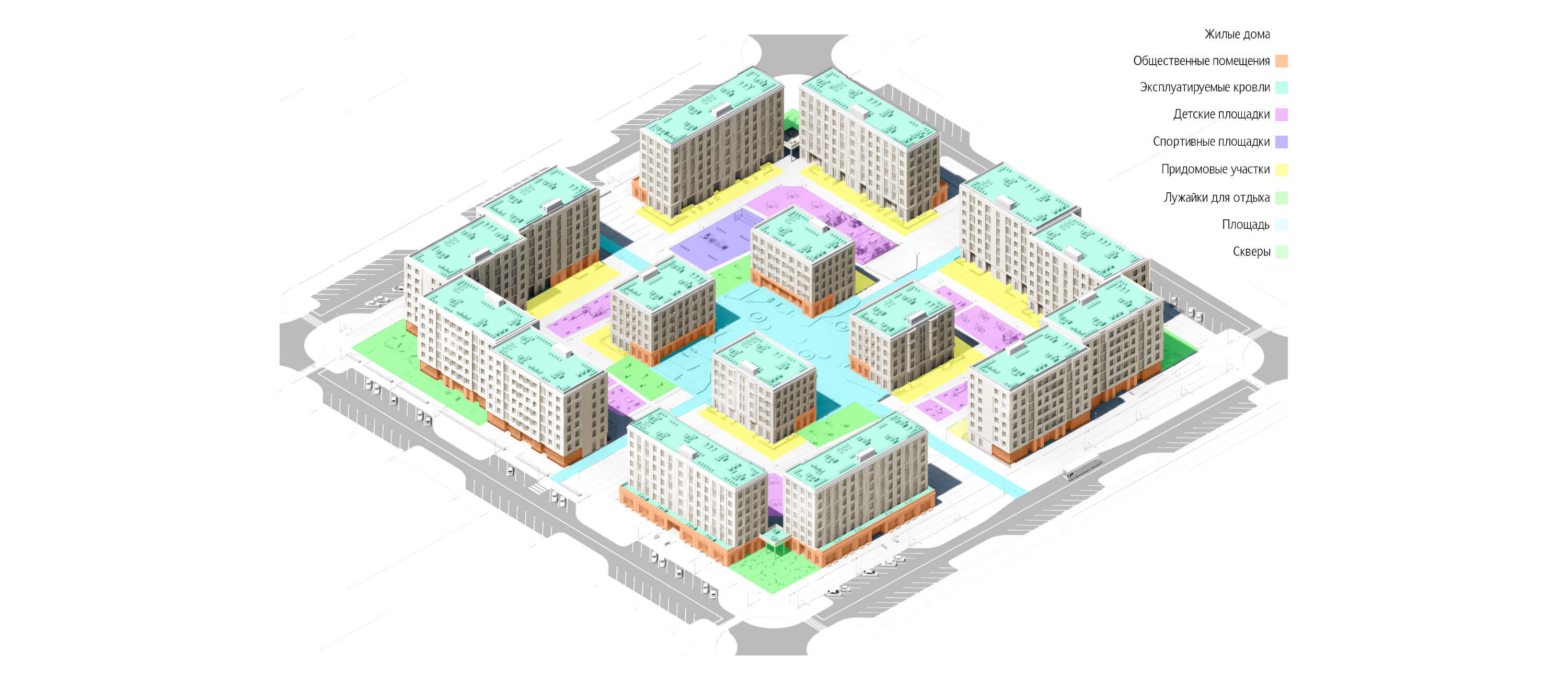 Концепция застройки и мастер-план — формирование основной идеи застройки. На этом этапе закладываются основные функциональные зоны, технологические связи как в здании, так и на территории. Подбираются референсы для определения стиля фасадных решений, используется искусственный интеллект (ИИ). Формируется первичный ТЭП, проверяются предельные параметры. Посадка всех объектов на участок производится с учетом градостроительных норм, пожарных, санитарных, экологических, общестроительных. На этом этапе определяется УГВ и методы борьбы с подтоплением если участок попадает в эту зону.
